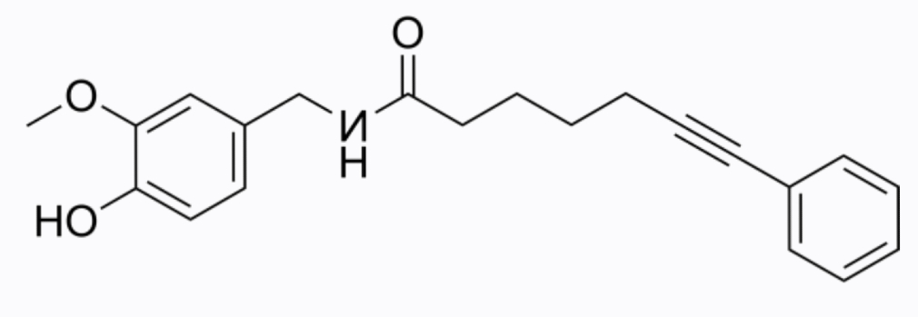 Capsaicin (the pungent ingredient of “hot” chili peppers) appears similar to N-Arachidonoyldopamine not only with respect to its chemical structure (a vanillylamine moiety linked to an unsaturated acyl chain via an amide bond) but also to its potency at vanilloid receptors of type 1 present in peripheral nerves and in several brain areas (striatum, hippocampus, cerebellum). Clinically, it has been shown that constant local application of Capsaicin desensitized neuronal cells and leads to relief from neuropathic pain (Catalfamo LM et al., Int J Environ Res Public Health 2022, 19:11187). Capsaicin has exhibited improvements on several pathophysiological conditions, such as chronic musculoskeletal and neuropathic pain, gastrointestinal disruptions, and metabolic disorders. Capsaicin seems also to enhance sport performance by reducing ratings of perceived exertion and perceived discomfort while improving mechanical performance.