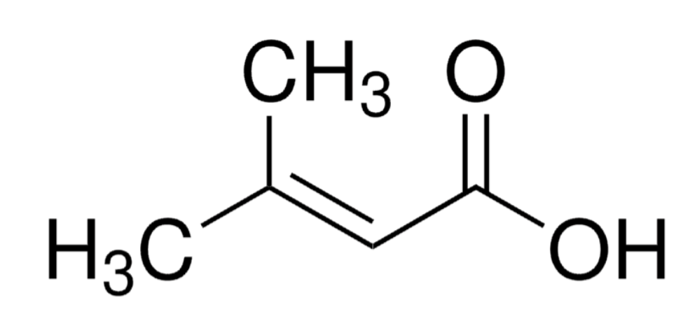 Senecioic acid is a methyl-branched fatty acid that has a but-2-enoic acid skeleton bearing a methyl substituent at position 3. It is found in the pheromones of mealybug species, the Madeira cockroach (Leucophaea maderae), several coleoptera and the Southern long-nosed bat (Leptonycteris curasoae). It also appears in the urine of patients with 3-methylcrotonic aciduria caused by 3-hydroxy-3-methylglutaryl-CoA lyase deficiency and those with 3-Hydroxy-3-methylglutaric aciduria.