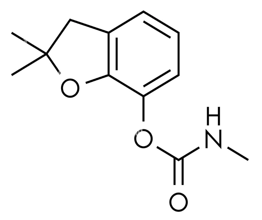 Carbofuran is a synthetic carbamate insecticide. It is a systemic insecticide, which means that the plant absorbs it through the roots throughout all organs where the insecticide will be retained. Carbofuran has also contact activity against pests. It is one of the most toxic pesticides still in use. It is banned in the US, the EU but still widely used in other countries (Wikipedia). Its toxic effects are due to its activity as a cholinesterase inhibitor and thus it is considered as a neurotoxic pesticide.