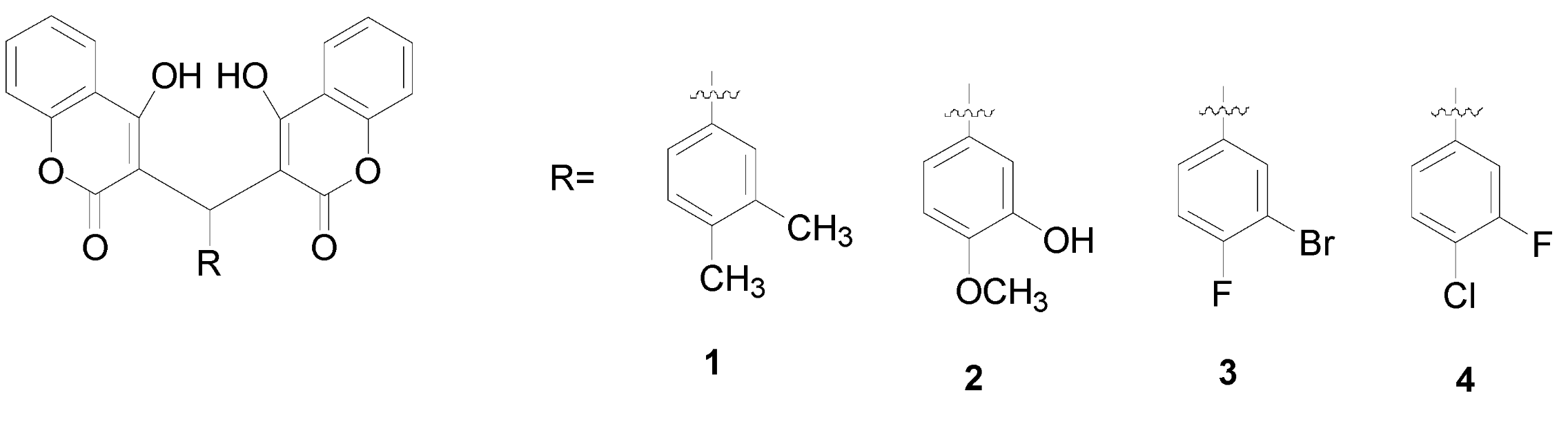 Biscoumarin and dihydropyran derivatives are widely available in nature. These coumarine derivatives exhibit various biological activities, such as anticoagulant, insecticidal, antihelminthic, hypnotic, and antifungal activities, phytoalexin production, and HIV protease inhibition. For biscoumarins, the minimum active harmacophore reportedly consists of a coumarin dimer containing an aryl substituent on the central linker methylene. The addition of 4-hydroxy substituents to coumarin rings improved the potency of the compounds. A series of biscoumarin derivatives have been evaluated for their antibacterial activities (Li J et al., Molecules 2015, 20, 17469).